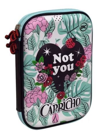 PRODUTO: Estojo Capricho Botânico Box Escolar 2020 DAC 2867 Marca: DAC Modelo: Estojo Categoria: Escolar Personagem: Capricho Referência: 2867 Cores: Floral (frente verde e atrás preto), parte interna rosa e zíper preto. Descrição: O Estojo Capricho Box é prático, espaçoso e ideal para quem está na escola ou na faculdade e quer guardar todos os materiais e acessórios em um só lugar. Além de facilitar sua organização e seu dia a dia, esse estojo possui material resistente e fechamento em zíper. Características: Estojo um compartimento, fechamento em zíper e puxador personalizado. Possui uma separação interna com 12 elásticos para segurar os lápis e telas para separação de itens. Material: PVC Conteúdo da embalagem: Um estojo com zíper. Dimensões aproximadas do produto (A x L x P): 21,5 cm x 14,5 cm x 5 cm Dimensões aproximadas da embalagem (A x L x P): 23 cm x 16 cm x 6 cm Peso aproximado da embalagem: 0,320 kg