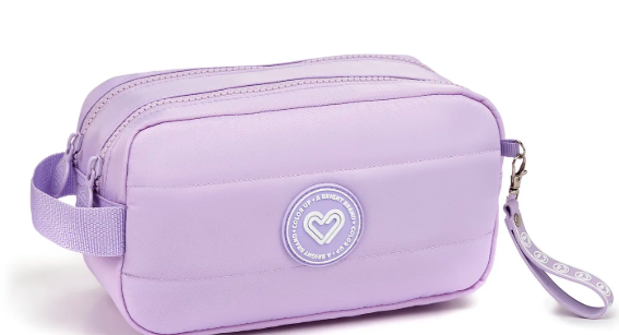 ESTOJO DUPLO FEMININO 100% POLIÉSTER | DOIS COMPARTIMENTOS | MATERIAL COM EFEITO MATELASSÊ | PUXADORES PERSONALIZADOS | ALÇA LATERAL | CHAVEIRO REMOVÍVEL