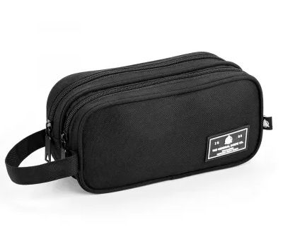 ESTOJO FEITO EM MATERIAL 100% POLIÉSTER. POSSUI DOIS COMPARTIMENTOS E PUXADORES PERSONALIZADOS. MEDIDAS: 21 CM (L) X 9,5 CM (A) X 6 CM (P)