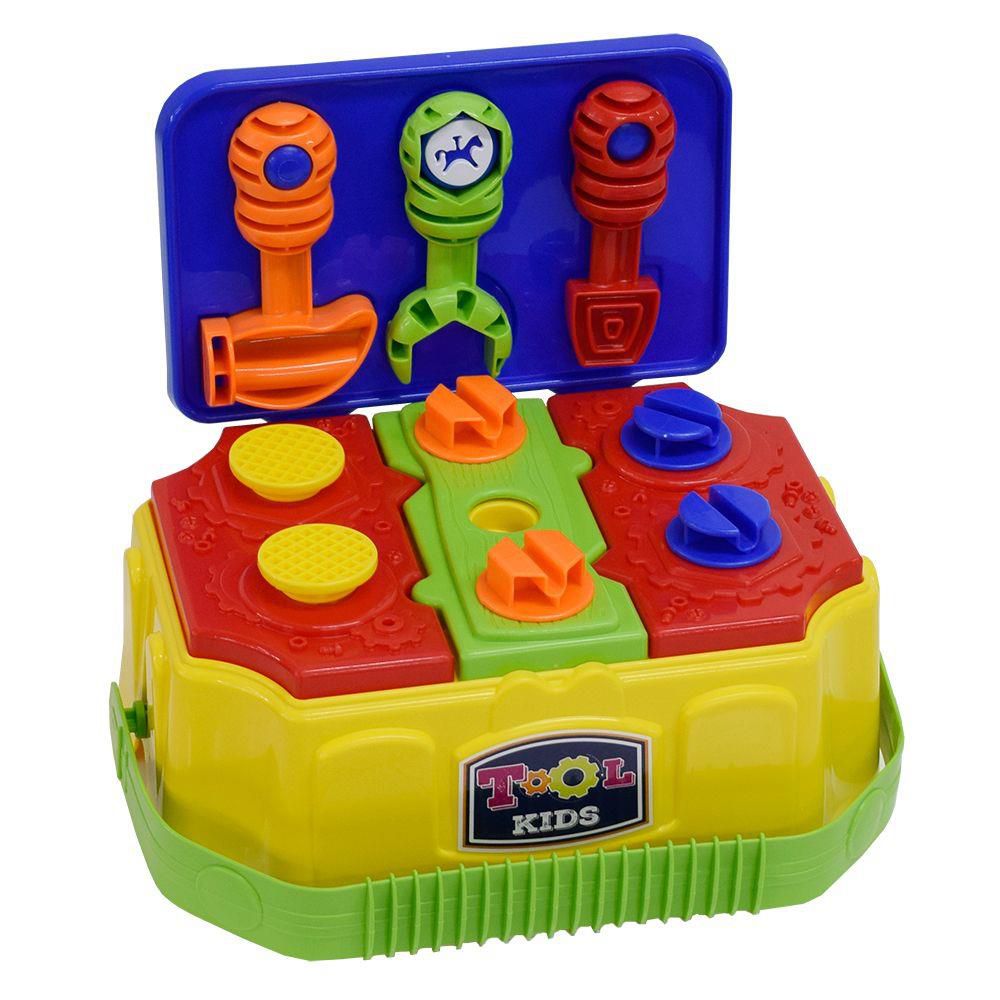Maleta de Ferramentas Calesita Tool Kids - 3 Ferramentas e 9 Peças - Amarela. Maleta de ferramentas para criar, montar e desmontar!