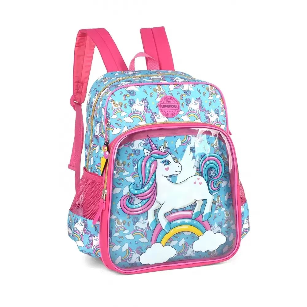 Mochila Grande Infantil Petit Unicórnio Up4You IS35471UP DESCRIÇÃO DO PRODUTO: Possui fechamento em zíper; Cursores personalizados; Alça de mão; Alça de costas reguláveis; Bolso frontal; Bolsos laterais em tela com fechamento em zíper. DIMENSÕES APROXIMADAS: Altura > 41cm Largura > 30cm Profundidade > 14cm