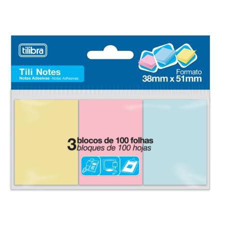 Bloco Adesivo Tili Notes 38x51mm 300 Folhas 3 Cores é ideal para anotações importantes, recados e lembretes. É possível ser colada na maioria das superfícies.