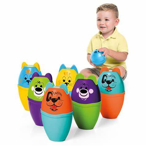 O Bolibichos vem com 6 pinos e 2 bolinhas de boliche.