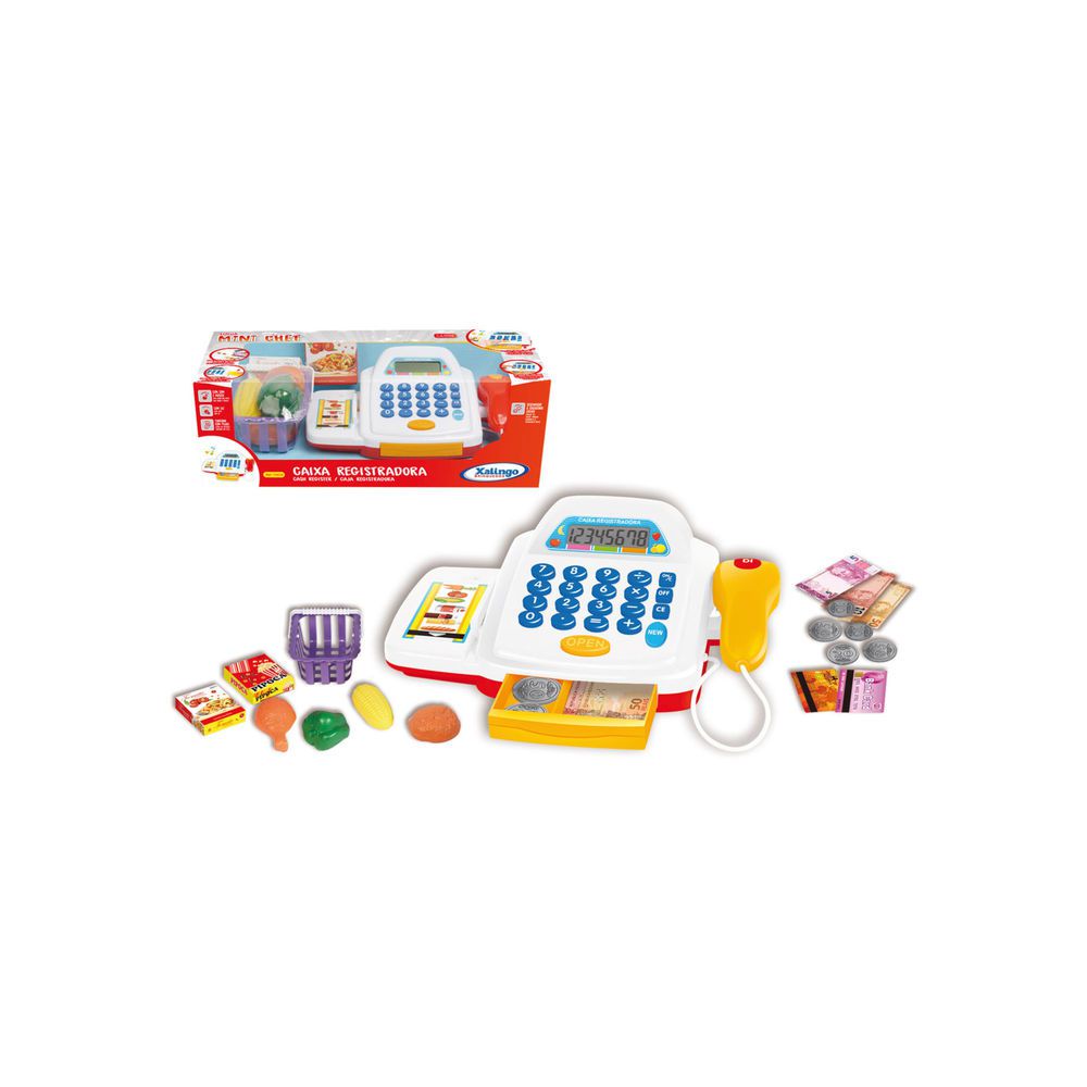 Caixa Registradora Mini Chef Xalingo Texto descritivo: : Caixa registradora com sons e luzes, beep, display funcional e acessórios. Indicado para crianças a partir dos 3 anos. Observações gerais: Brincar com essa temática favorece a aprendizagem e desenvolve, de forma lúdica, a autonomia, a possibilidade de escolha, a relação de troca, além de conceitos matemáticos e sociais. Composição (Material / Tecido): POLIPROPILENO Garantia fornecedor: 3 MESES Voltagem: NA Alimentação (Pilha / Bateria): NA Auxilia no desenvolvimento?: Sim Atóxico?: Sim Limite de peso recomendado: NA Idade recomendada: +3 anos Código da certificação regulamentar: CE-BRI/INNAC 00183-000 Peso Bruto (kg): 1 Comprimento (m): 0,36 Largura (m): 0,16 Altura (m): 0,125