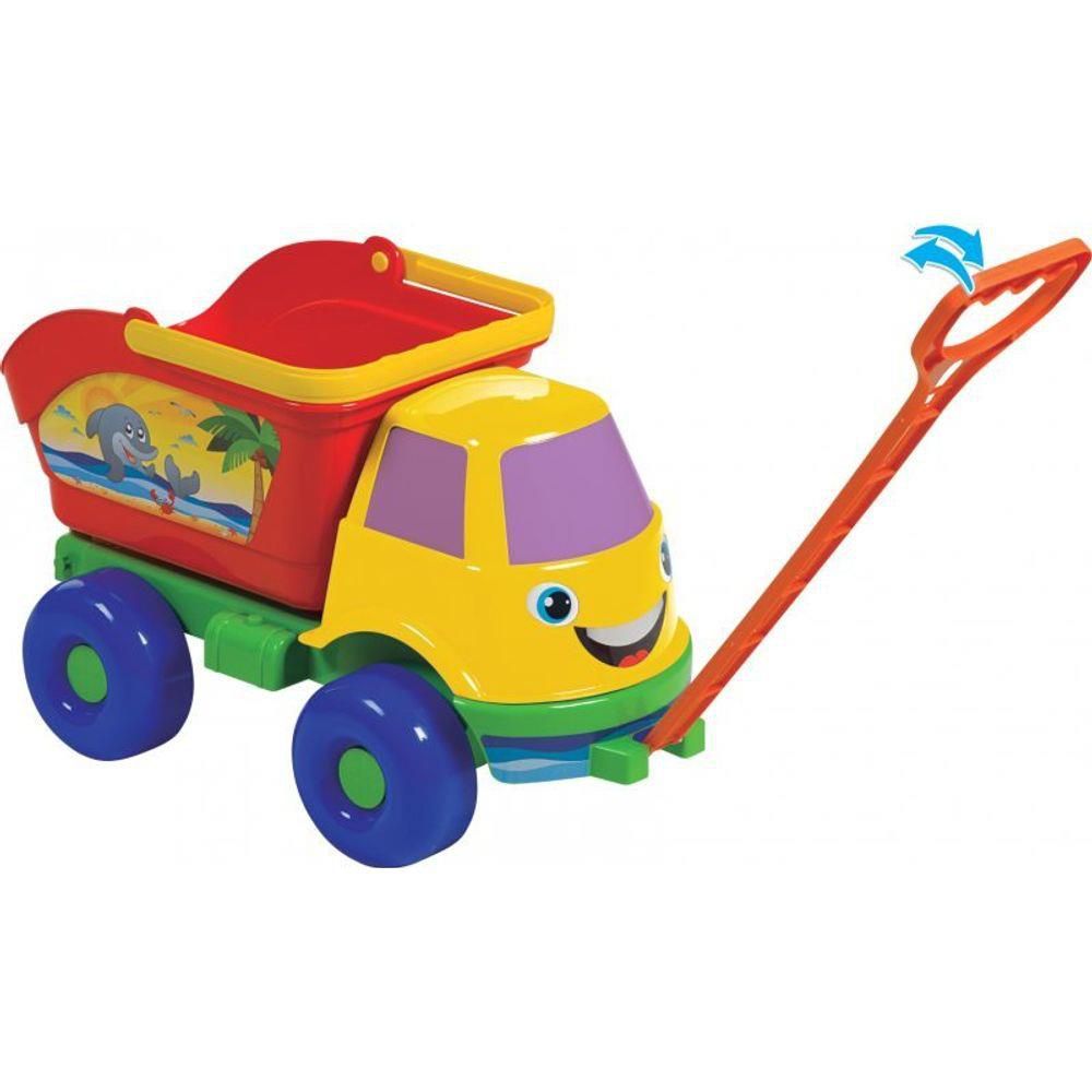 Carregue seu caminhão com areia e começe a diversão. O caminhão tem a caçamba removível e em forma de balde. Acompanha rastelo e pá. A haste para puxar se dobra e pode ser fixada no fundo do chassis. Faixa etária: +12 meses Tamanho aprox. do produto: 28,3x23x45 Ref:605 Fornecedor: MercoToys