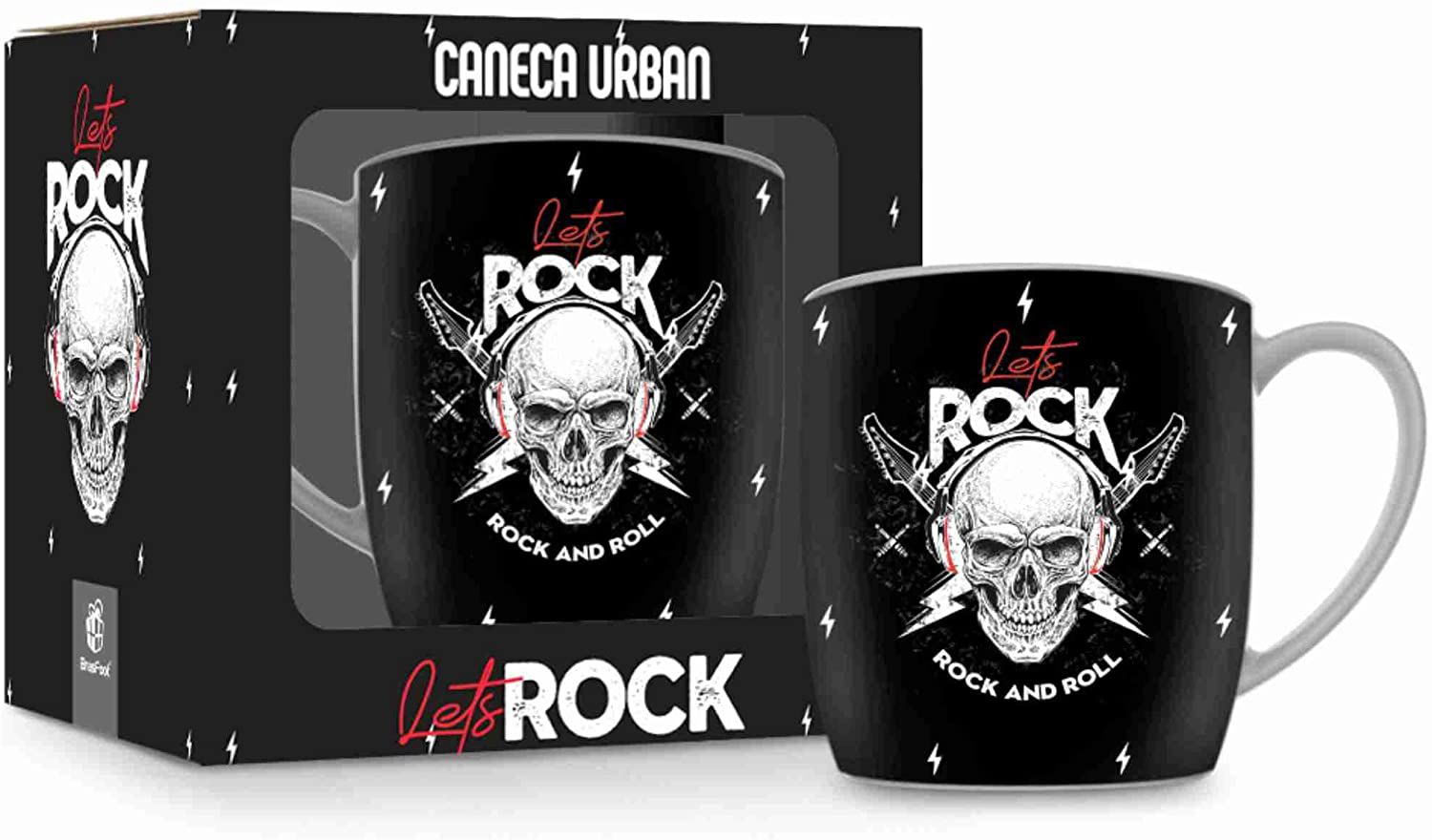 Cadê os loucos por Rock? A Caneca LET’S ROCK é cheia de estilo e perfeita pra quem se amarra nos sons pesados das guitarras e quer apreciar sua bebida de uma forma marcante. A Caneca Urban é fabricada em porcelana de alta qualidade que garante maior durabilidade durante seu uso. A Linha de Canecas Urban é um item essencial no seu café da manhã, além disso você pode usá-la como porta treco, porta lápis ou presentear alguém especial. Características: Altura: 9 cm Diâmetro: 8.5 cm Capacidade: 360 ml Contém 1 caneca Cuidados: Lavar com água e sabão neutro Não utilizar produtos químicos e abrasivos Impactos podem danificar o produto