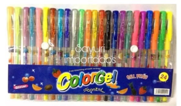 Conjunto caneta gel 24 unidades. As cores podem sofrer variações.