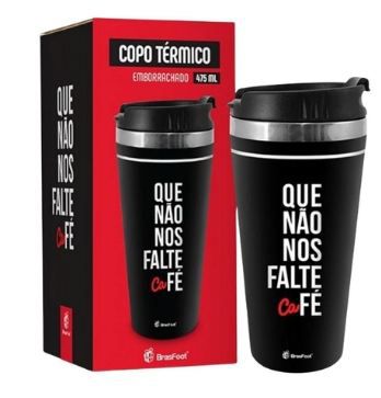 Copo Térmico Inox Emborrachado Que Não Nos Falte Café 450ml Brasfoot