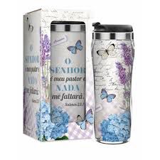 Para aquela pausa no meio do dia apreciar sua bebida preferida neste lindo copo inspirador estampado com versículo da bíblia sempre vai bem. Com os nossos produtos da linha religiosa, sua vida fica com muito mais charme e sua casa ainda mais linda. Ele é confeccionado em aço inox, com vedação em silicone e tampa abre-fecha feito em material resistente e de alta durabilidade, com parede dupla para conservar a temperatura por mais tempo, possui base antiderrapante e BPA Free. Características: Altura: 17.5 cm Diâmetro: 8.00 cm Capacidade: 350 ml Contém 1 copo Cuidados ao usar: Não é hermeticamente fechado, por isso transportá-lo na posição vertical Lavar com água e detergente neutro Impactos podem danificar o produto Manusear com cuidado Não é a prova de pequenos vazamentos Não coloque o produto no congelador