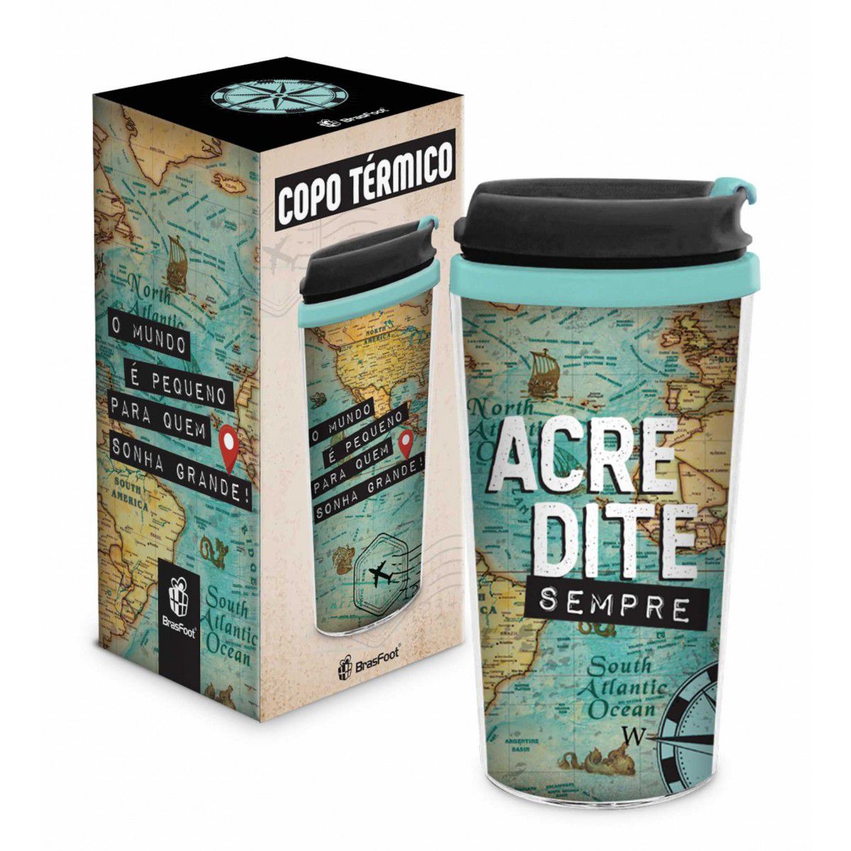 O mundo é pequeno pra quem sonha grande. Sonhe e aprecie suas bebidas favoritas no lindo Copo Smart O Mundo é Pequeno. Prático e com uma linda estampa, ele é confeccionado em material resistente e seu revestimento faz com que a temperatura da bebida se mantenha por mais tempo. Sua tampa permite que o copo seja aberto de duas formas: rosqueável ou do modo abre-fecha. Características: Altura: 14,3 cm Diâmetro: 7,4 cm Capacidade: 200 ml Contém 1 copo