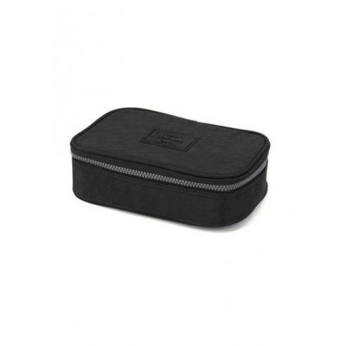 ESTOJO PRETO COM ZÍPER ET4056UP-PT Estojo unissex a transportar lápis, canetinhas e canetas. Caracterísitcas: contém divisórias com elástico para canetas, fechamento por zíper com puxador personalizado. Composição: 100% poliéster. Medidas aproximadas: Altura: 6 cm; Profundidade: 15 cm; Largura: 21 cm