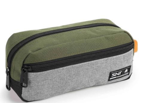 Estojo masculino 100% poliéster. O modelo possui alça superior de mão, puxadores personalizados, divisória principal e bolso frontal.