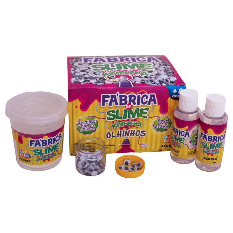 Novo Brinquedo Fabrica de Slime Kimeleka Art Kids Acrilex. Contém: 1pote de base com 60g, 1 pote de ativador com 45g, 1 pote de liquido magico com 45g, 1 pazinha. Não mancha as roupas, garantindo assim a diversão das crianças e a tranquilidade dos pais. Direcionada ao público infantil, a linha ArtKids da Acrilex estimula o desenvolvimento da criatividade e das habilidades motoras através da brincadeira e diversão, agradando em cheio à criançada. Imagens meramente ilustrativas.