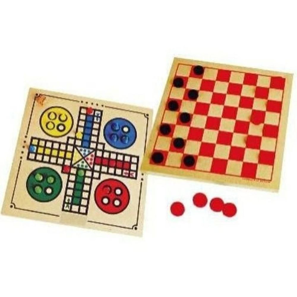 Jogo de Damas e Ludo com tabuleiro em madeira em formato de estojo para guardar as peças dentro, desenvolva o raciocínio para ganhar as disputas com seus amigos.