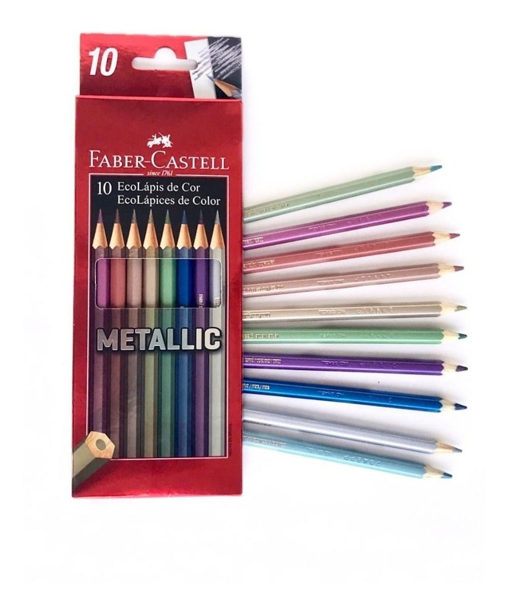 Lápis de Cor Metallic 10 Cores Faber Castell -- DESCRIÇÃO DO PRODUTO -- Lápis de Cor para pintar e desenhar, com qualidade em cada traço. São 10 cores metálicas, com incríveis efeitos brilhantes, principalmente sobre papéis escuros. -- ESPECIFICAÇÕES DO PRODUTO -- * 10 Lápis em cores diferentes; * Cores Metálicas; * Corpo de madeira sextavado; * Mina resistente; * Fabricado com madeira de manejo florestal sustentável e certificado; * Qualidade Faber-Castell!