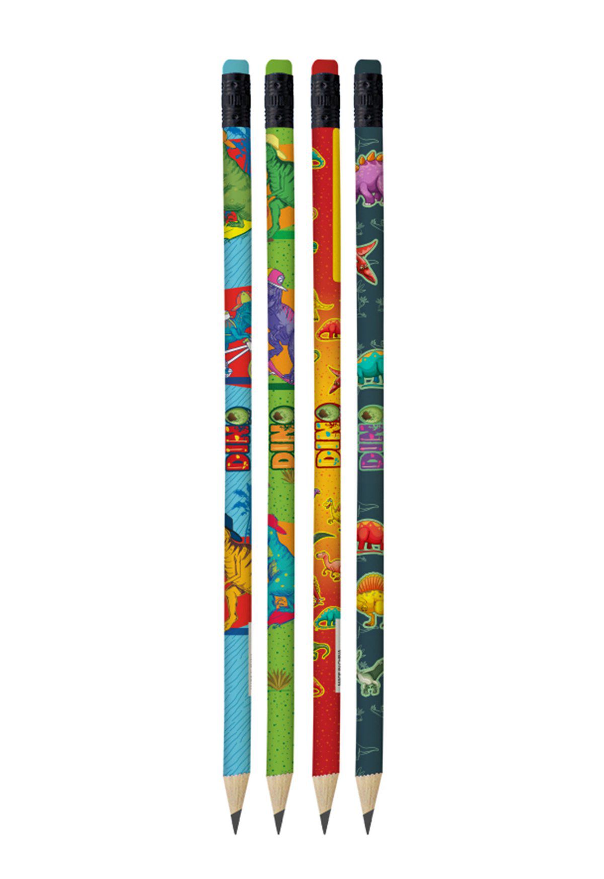 Com estampas de dinossauro e espaço para o nome! Lápis de madeira reflorestada, com traço HB, corpo redondo e borracha no topo. Cores sortidas.