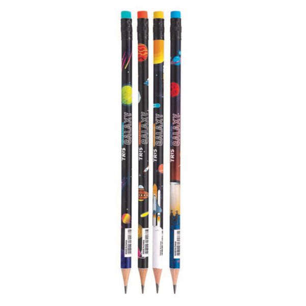 Com estampas inspiradas na galáxia, foguetes, planetas e astronautas vão invadir os seus estudos! Lápis de madeira reflorestada, com traço HB, corpo redondo e borracha no topo. Cores sortidas.