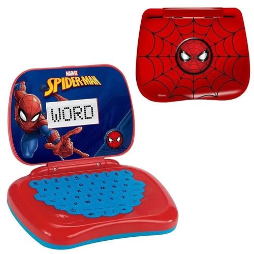 Laptop infantil com diferentes grupos de atividades, sendo eles: Musica, Letras, Palavras, Ortografia, Perguntas e Respostas, Soma e Divisão. Com o laptop do Spider Man as crianças aprendem brincando.