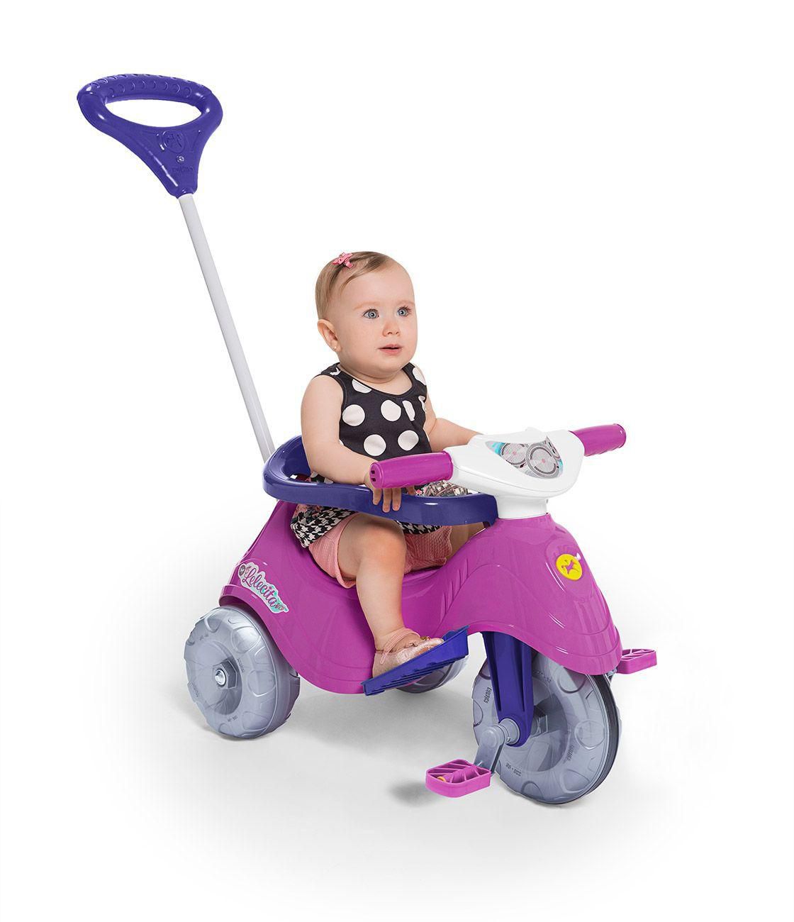 Brinquedo Velotrol Triciclo Lelecita Rosa Original Calesita O Triciclo Lelecita chegou com um design despojado e com cores que a gente ama. É compacto, prático e na medida certa para você levar ele por onde você for. Além da direção e rodas serem guiadas pelo empurrador, ele vem com apoio de pé, pedal e espaço para guardar a garrafinha de água ou mamadeira. E claro, acompanha o crescimento do seu bebê, através das versões passeio e pedal. As cores das peças podem variar sem opção de escolha. Cor: Rosa Conteúdo da embalagem: 1 Lelecita 1 Aro Protetor 1 Par de Apoio de Pés 1 Haste 1 Empurrador 1 Manual de Instruções. Idade Recomendada: A partir de 12 meses. Suporta até 30 kg. Fotos meramente ilustrativas. As cores disponíveis conforme estoque. Dimensões do Produto (LxAxP ) 40x92x67 cm Dimensões da Embalagem (LxAxP ) 43 x 49,5 x 66,5 cm Peso: 3,3 Kg Produto Novo e Lacrado com Garantia e Nota Fiscal.