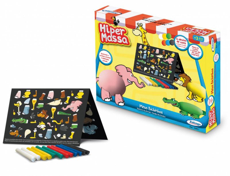 A Massinha Xalingo Meus Bichinhos serve como estímulo para o desenvolvimento motor da criança, juntamente com o uso da imaginação, criatividade, percepção visual, possibilita ainda a aprendizagem das cores e suas misturas. A atividade de formar animais com massinha de modelar torna a brincadeira um desafio prazeroso e cativante para a criançada. Recomendado para crianças a partir dos 3 anos, a Massinha Meus Bichinhos vem acompanhada dos seguintes itens: 12 massinhas de modelar em cores sortidas e 01 cartela com partes do corpo de diversos animais (cabeça, patas, asas, caudas entre outros). É diversão que não acaba mais!