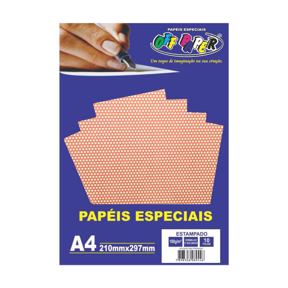 PAPEL ESTAMPADO 180G VERMELHO COM BOLINHAS C/10 FOLHAS