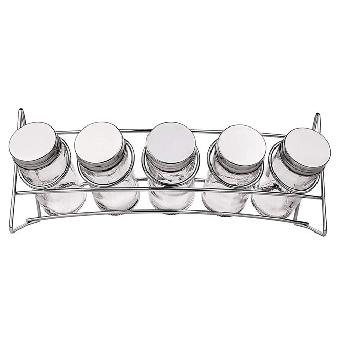 Descrição Item:6 Portas CONDIMENTOS, mais suporte Informações Extras Material:Potes em VIDRO, SUPORTE em aço inox