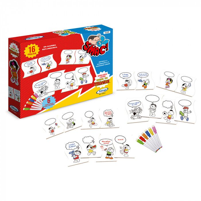 Com o Quebra-cabeça História Minha Turma da Mônica Xalingo Brinquedos as crianças podem montar diferentes histórias da turminha. O jogo contém 16 peças em madeira reflorestada e 6 canetinhas para colorir quantas vezes quiser. As cenas são modulares, dessa forma as crianças podem criar e inventar sua própria historinha preenchendo os balões de fala para dar vida aos personagens. Recrie e misture, colorindo as cenas diversas vezes com infinitas possibilidades. Indicado para crianças a partir dos 3 anos de idade.