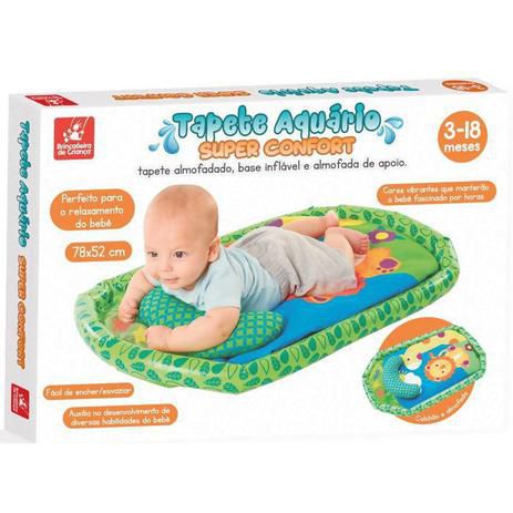 Os Bebês vão adorar passar o tempo no Tapete Baby Super Confort Este tapete macio e almofadado possui uma base inflável, parte com água e 4 animais marinhos flutuantes, colchonete e almofada fofinha para o conforto do bebê É fácil de encher/esvaziar e montado possui 78x52 cm. É perfeito para o relaxamento do bebê possuindo cores vibrantes que os manterão fascinado por horas.