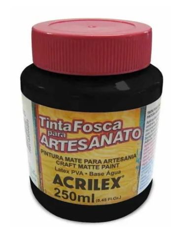 Tinta Para Pva 250ml Fosca - 520 Preto Acrilex Produto Novo com Nota Fiscal. tinta para pva 250ml fosca - 520 preto acrilex para trabalhos artesanais sobre madeira, papel, cerâmica, mdf, isopor, couro, gesso, cortiça e palha. em outros materiais recomendamos teste prévio. pronta para o uso. agite antes de usar. solúvel em água. cores miscíveis entre si. acabamento fosco. secagem rápida. tampe após o uso. [+] Informações Adicionais: • Marca: ACRILEX • Dimensões aprox. do produto embalado (cm): 10.0000 x 7.5000 x 7.5000. • Peso aprox. do produto embalado (Kg): 0.45. • Código de Barras: 7891153032047