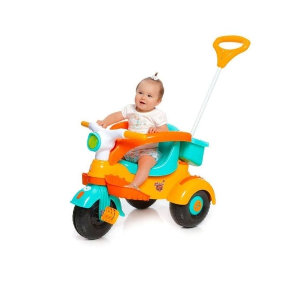 Aventuras, passeio e pedal, ficam mais divertidos com o Carrinho Motoca Triciclo da Calesita, um carrinho seguro e divertido para passeios. Com aro protetor, apoio de pés e empurrador, a segurança e a alegria estão garantidas. O Velocita Classic estimula a coordenação motora: tirando os acessórios a criança pode pedalar livremente. Além disso, os pequenos podem levar seus brinquedos no compartimento atrás do carrinho.Características Técnicas: Rodas dianteiras com borracha para não derrapar; Espaço para guardar brinquedos; Direção e rodas guiadas pelo empurrador; Encaixe e desencaixe o empurrador com praticidade; Com 02 buzinas; Ao retirar os acessórios, o guidão gira e a criança pode pedalar.Certificação de Segurança do INMETRO;Idade Recomendada: A partir de 12 meses;Peso Máximo recomendado: 30 kg.Habilidades a Desenvolver: Coordenação entre olhos e pés; Coordenação motora grossa braços e pernas.